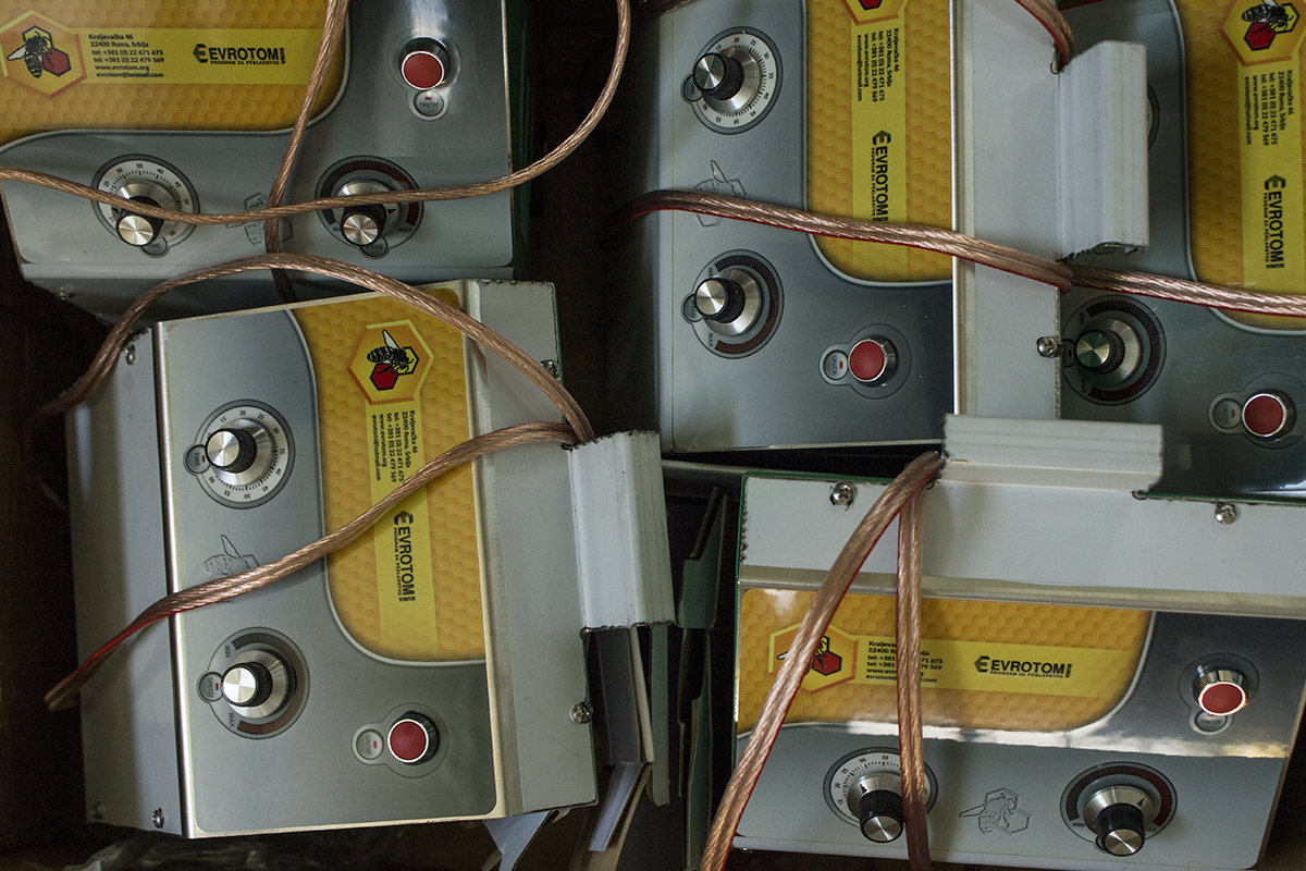 Oprema za vrcanje, skladištenje i pakovanje meda, radni stolovi, sakupljači polena.